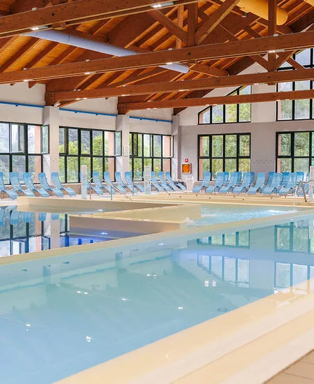 piscina bimbi interna – piscina gym - piscina idromassaggi – percorso vascolare – piscina interna collegata con l’esterno e prima piscina esterna collegata con l’interno.